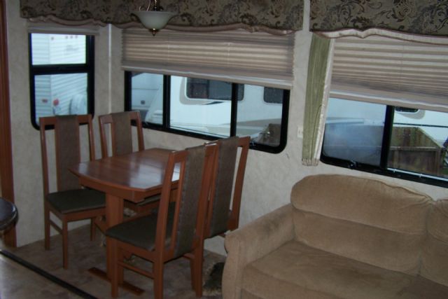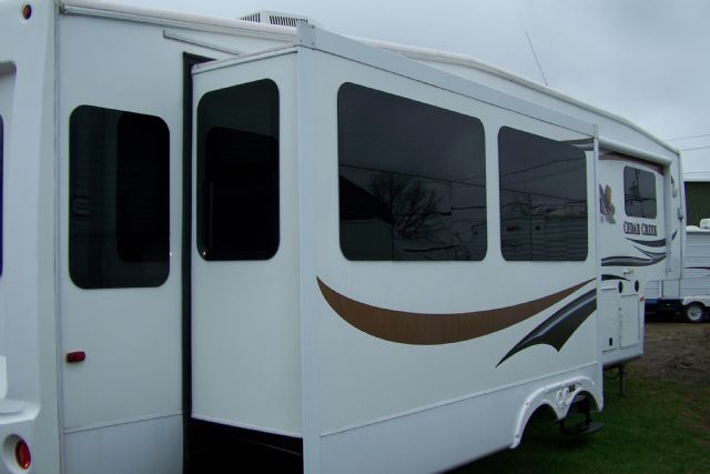 Majestueuse fifth-wheel impeccable de marque Cedar Creek modèle 34RLS 2011 d’un poids de 11569 lbs. Son fini extérieur est en fibre de verre. Elle est dotée de trois extensions, 2 simples et 1 double. Elle possède 2 essieux , un système stabilisateur hydraulique, un système de nivelage automatique, un système Trailair, un auvent électrique et bien plus encore. Pour l’intérieur, que dire du salon avec ses 2 fauteuils, son divan-lit double ainsi qu’une télévision 40¨ encastrée. La salle à manger avec son îlot centrale, sa table et ses 4 chaises. Elle a énormément de rangement et ce, partout. Il faut voir sa chambre à coucher avec son lit queen, sa télévision, sa grande salle de bain avec une très grande douche en coin ainsi qu’une toilette de porcelaine et une grande vanité. Elle possède en plus une laveuse/sécheuse combiné ventilé. Comme vous pouvez le constater c’est un produit haut de gamme. Elle est plus qu’à voir.